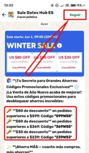 Este es un ejemplo real de lo que recibirás: códigos promocionales verificados, alertas anticipadas de ventas y consejos de ahorro, todo enviado directamente a tu mensajero.